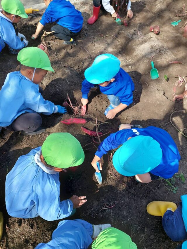 「おおきいねー」「ここにもあるよ」とお芋を傷つけないように優しく丁寧に掘っていました!